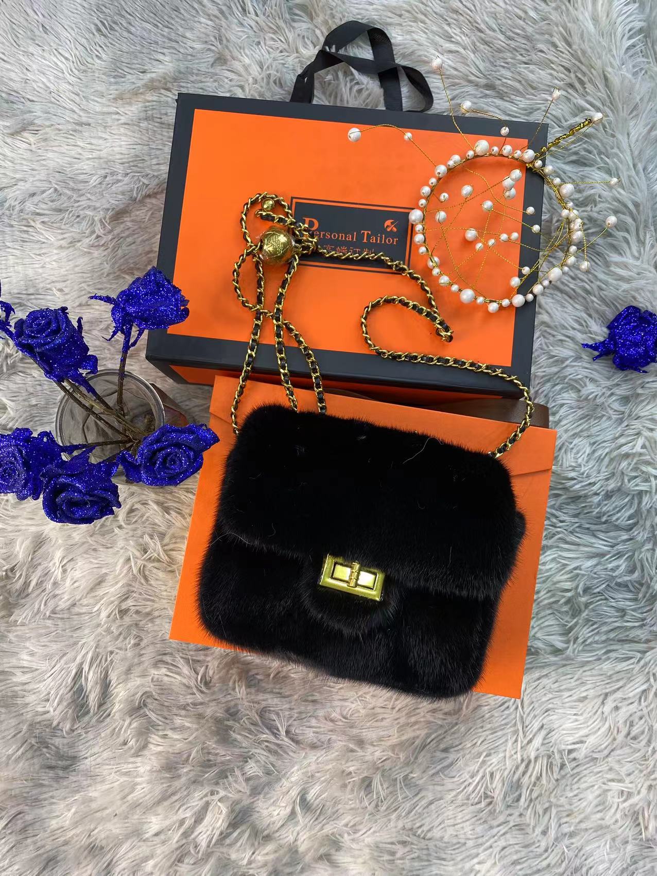 CS-B151 black mink fur bag