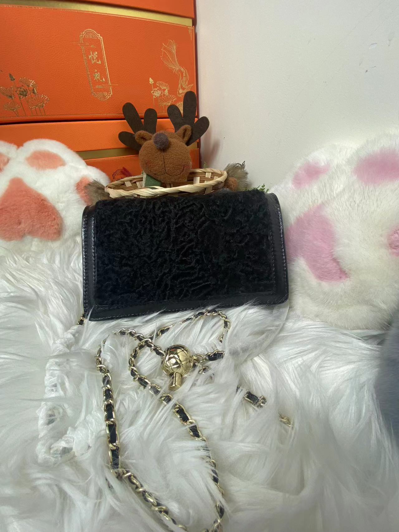 WFCS-BZ1114-5 Karaku black wool fur bag