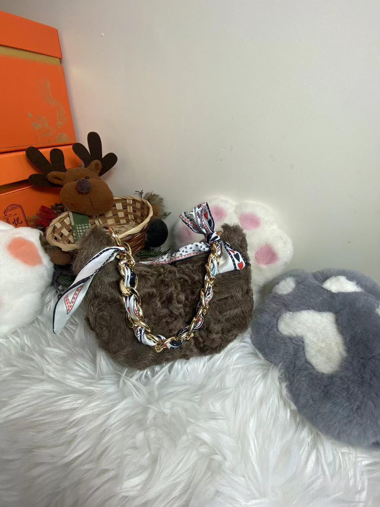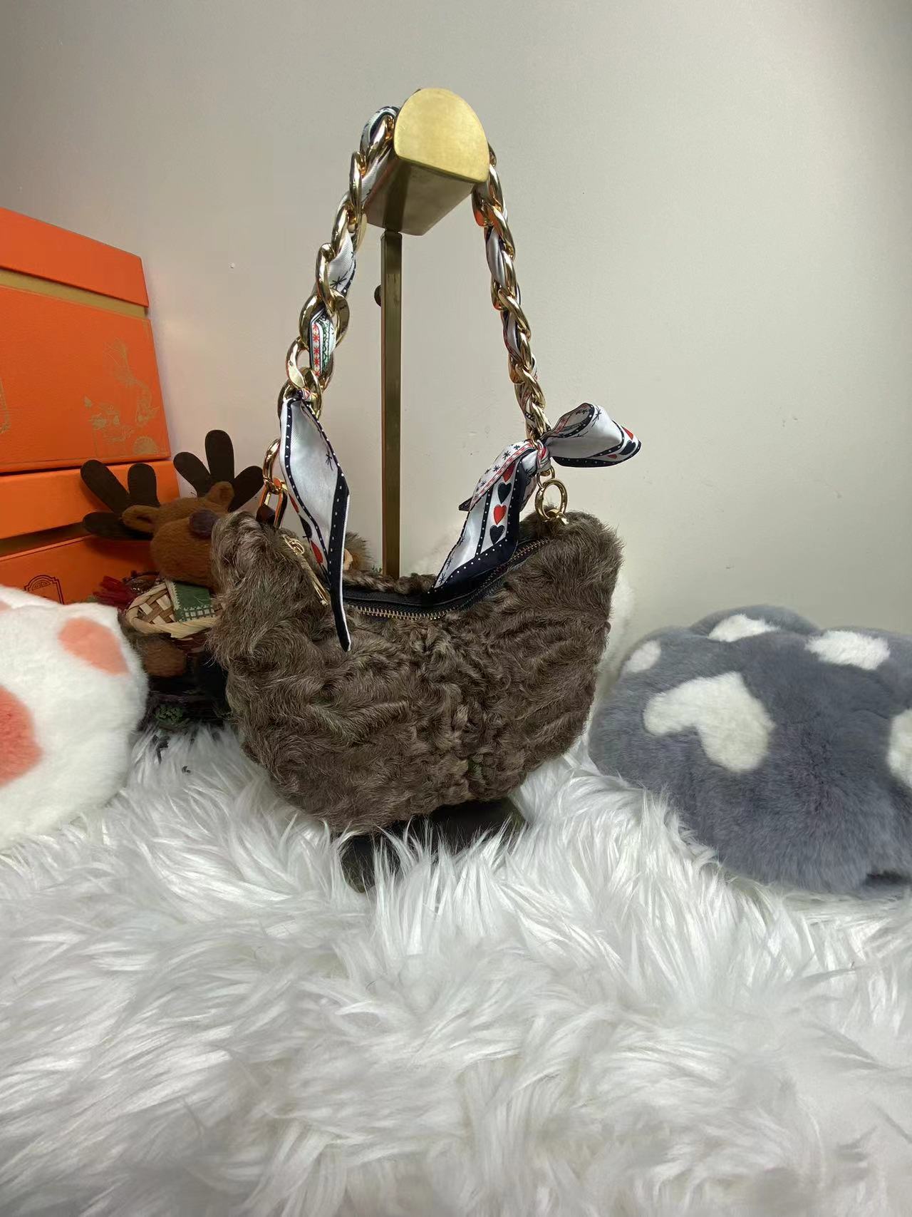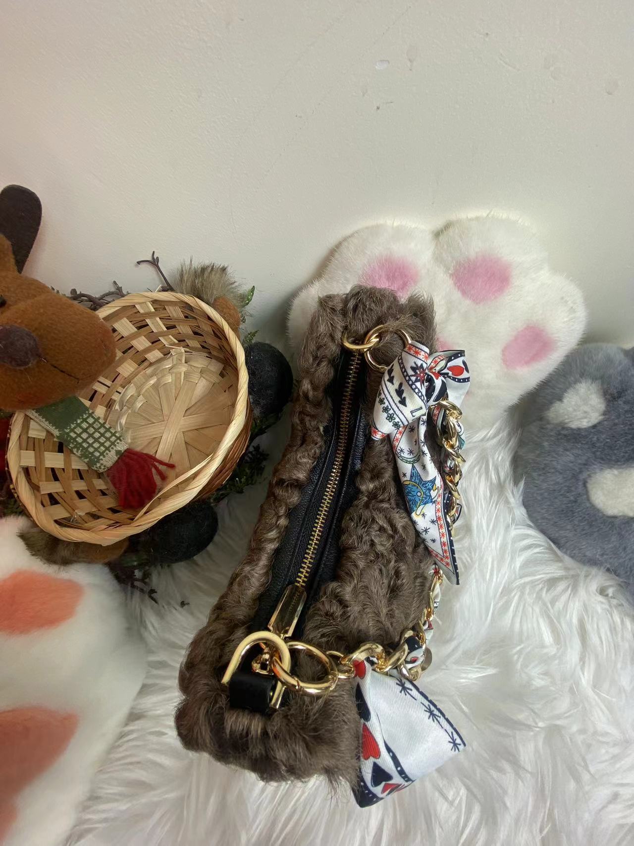 WFCS-ZX690 Karaku Coffee Wool Fur Bag